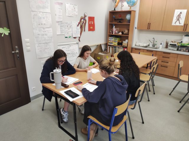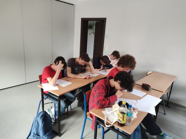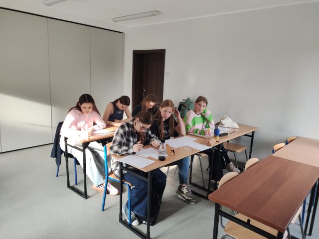 Uczniowie klas ósmych spotkali się w szkole w godzinach 17.00 – 21.00 i pod okiem czterech nauczycielek matematyki rozwiązywali zadania egzaminacyjne. Podzieleni na grupy, przechodzili między czterema stacjami, pogłębiając swoje umiejętności matematyczne z poszczególnych działów. Podczas przerwy posilali się smaczną pizzą. Była to kolejna okazja, aby się sprawdzić na niecały miesiąc przed egzaminem.