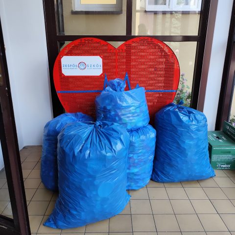 Zbiórka nakrętek w roku szkolnym 2024/2025. Udało nam się zebrać ok. 50 kg nakrętek. Wspieramy Oskara dalej!